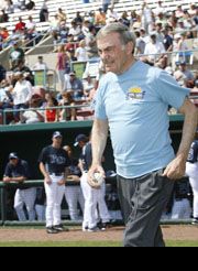 The 2008 campaign kicked off in St. Petersburg on March 1 at Progress Energy Park, home of Al Lang Field. Sam Donaldson (pictured, right), veteran ABC newsman, melanoma survivor and chairman of Moffitt’s Board of Advisors, threw out the first pitch.
